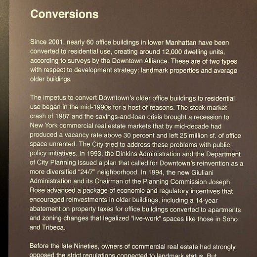 I also went to the Skyscraper Museum, which has an interesting exhibition on office to real estate conversions: